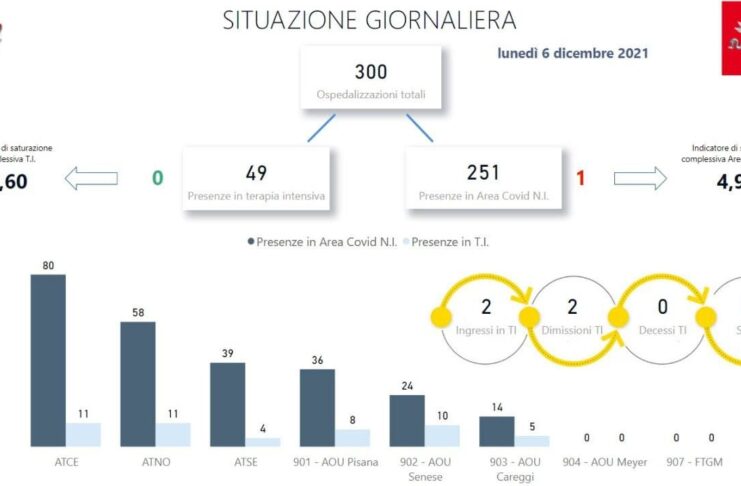 FIRENZE – E’ un lunedì, questo 6 dicembre, in cui diversamente dal solito (il lunedì si assiste sempre a una risalita) i dati sui ricoverati nei reparti Covid degli ospedali della Toscana rimangono costanti.