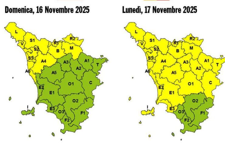 Per questo la Sala Operativa della protezione civile regionale estende dalle 21 di oggi (domenica 16 novembre) l’allerta già in vigore con codice giallo a quasi tutto il territorio della regione, incluse le isole dell’Arcipelago.