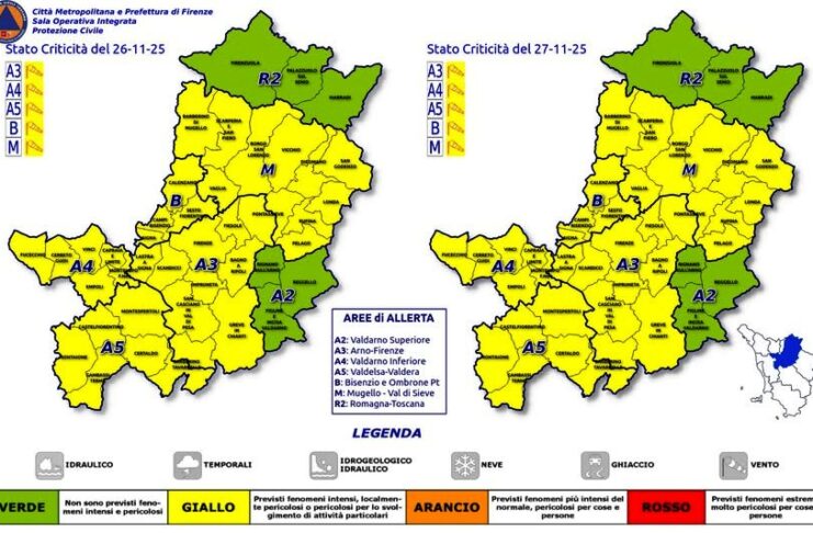 FIRENZE – La sala operativa della Protezione Civile Città Metropolitana di Firenze informa dell’allerta meteo codice giallo, emanata da Regione Toscana, per rischio vento.