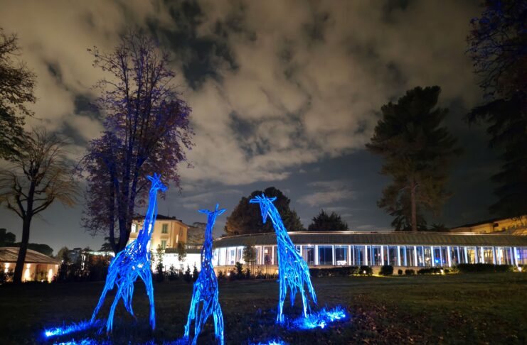 FIRENZE – Le giraffe del parco dell’ospedale pediatrico Meyer – insieme alla Hall serra dell’ospedale e al Family Center – si tingono di blu, in occasione della Giornata Mondiale del Diabete.