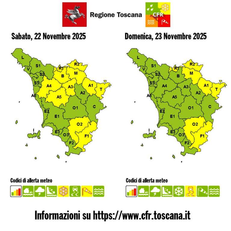 Ulteriori dettagli e consigli sui comportamenti da adottare, in base alle diverse tipologie di rischio, sono disponibili nella sezione Allerta meteo del sito della Regione Toscana: www.regione.toscana.it/allertameteo.
