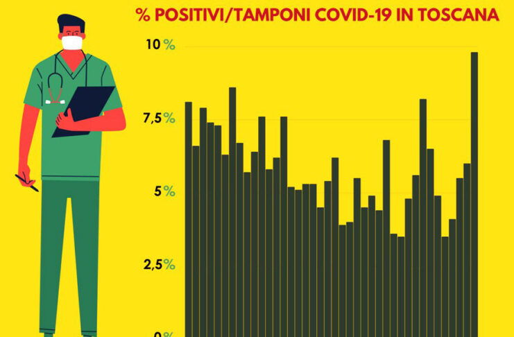 FIRENZE – Era dal 24 novembre (o almeno, noi nella nostra tabella andiamo a ritroso fino ad allora) che in Toscana non veniva toccata una percentuale di positivi/tamponi totali come quella di oggi, al 9,8%.