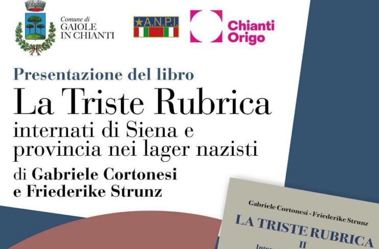 GAIOLE IN CHIANTI – Sabato 11 aprile, alle ore 17, a Gaiole in Chianti, presso Chianti Origo si terrà la presentazione del libro “La triste rubrica, internati di Siena e provincia nei lager nazisti” di Gabriele Cortonesi e Friederike Strunz.