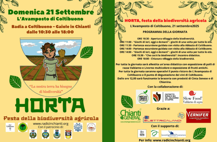 BADIA A COLTIBUONO (GAIOLE IN CHIANTI) – Domenica 21 settembre alle ore 10.30 a L’Avamposto di Badia a Coltibuono si terrà l’apertura della prima edizione di Horta, festa della biodiversità, da un’idea dell’Associazione di Radici in Chianti in collaborazione con il Circolo della Società Filarmonica e La Racchetta.