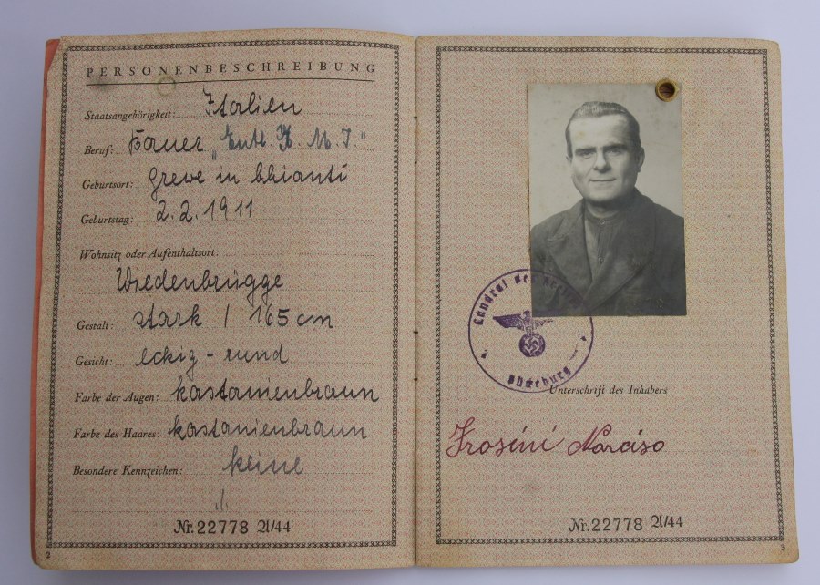 Insieme alle foto è uscito anche un documento, un passaporto rilasciato dallo Stato unitario tedesco Deutsches Reich a Narciso Frosini, di Greve in Chianti. Che fu catturato durante un rastrellamento e portato insieme con altri in un campo di lavoro in Germania.