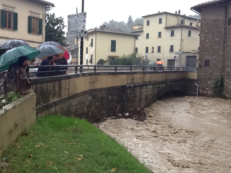 "Abbiamo attivato la protezione civile – prosegue – che con i vigili urbani e con l’aiuto anche del personale di Impruneta ha permesso garantire la viabilità di base . Alcuni esercizi commerciali hanno subito allagamenti (in foto la Greve al ponte di Sant'Anna, nel capoluogo), così come cantine e garage di privati che sono tuttora sott’acqua".