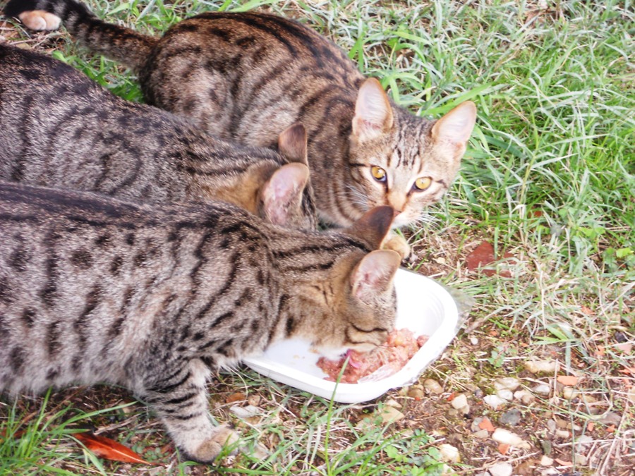 Anche ora viene dato loro regolarmente da mangiare ma è molto difficile continuare con l'avvicinarsi dell'inverno. Per la mamma (nel frattempo sterilizzata) è stata trovata una sistemazione.