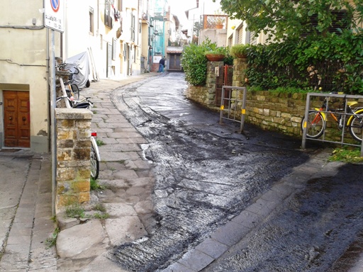 E’ in corso un piano di asfaltature, redatto dall’amministrazione comunale, che ha già visto una prima serie da 28mila euro. La seconda serie è iniziata con un intervento molto atteso a Lamole e, giovedì 22 novembre, con la sistemazione di via Camaldoli (in foto sopra), il tratto nella parte più antica di Greve che sale su verso Sagrona.