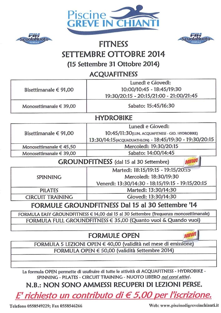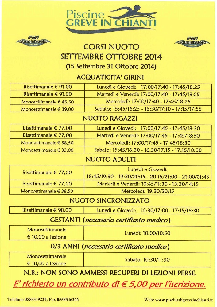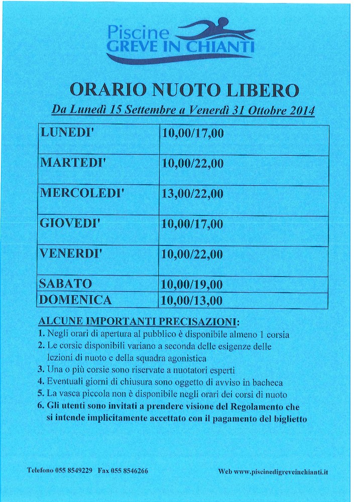 GREVE IN CHIANTI – E' un super autunno quello appena iniziato alle Piscine di Greve in Chianti, dove hanno preso il via i corsi di nuoto, il nuoto libero, mentre sono iniziati anche gli allenamenti degli agonisti per la stagione 2014/2015 (nelle immagini qui sopra tutti i dettagli).