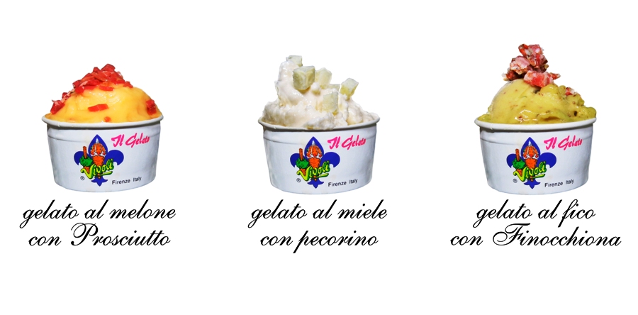 Gelato al melone con il prosciutto, gelato al fico con la Finocchiona e gelato al miele con il pecorino, sono i primi tre gusti nati da questa speciale collaborazione, che ha voluto riprodurre in chiave contemporanea alcuni degli abbinamenti più tipici della nostra tradizione culinaria.