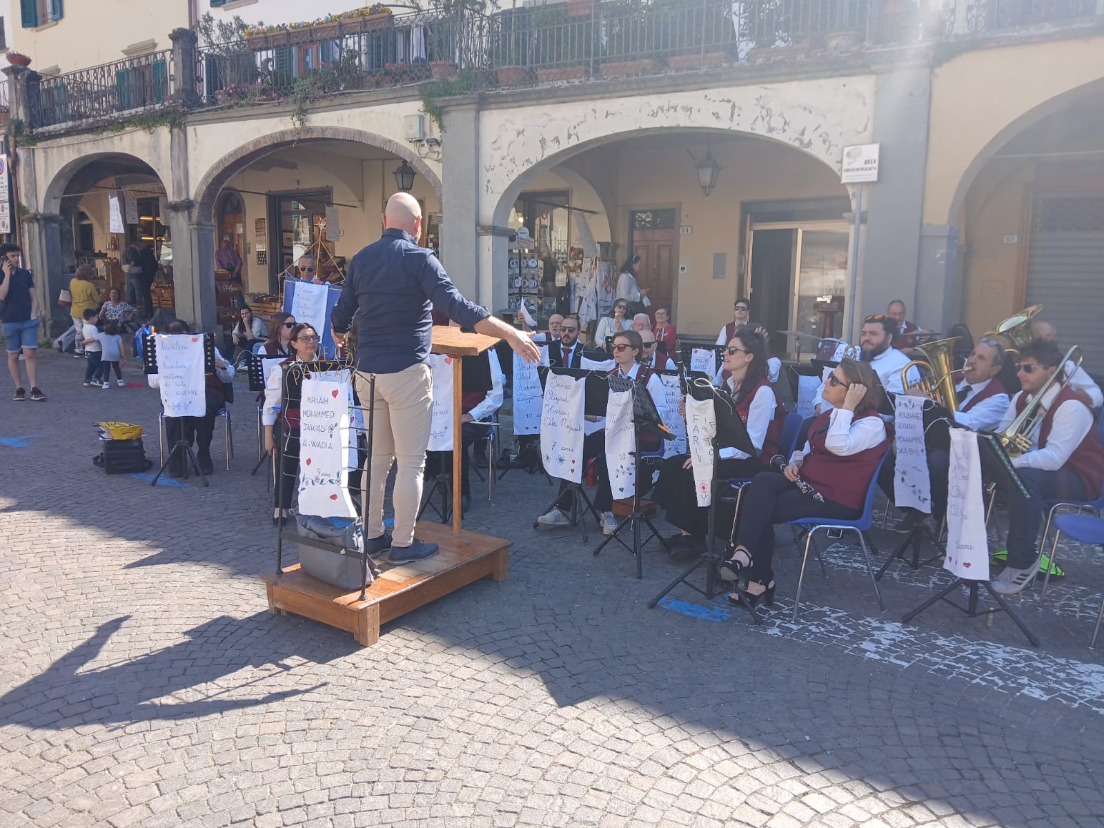 Gli organizzatori fanno sapere che c’è stato moltissimo interesse e partecipazione da parte della popolazione e che insieme alla consegna dei drappi sono stati raccolti 600 euro di donazioni che saranno destinate a Emergency.
