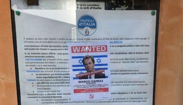 “Affisso un volantino anonimo dal contenuto gravemente diffamatorio e con chiari richiami antisemiti, rivolto contro il console di Israele Marco Carrai”