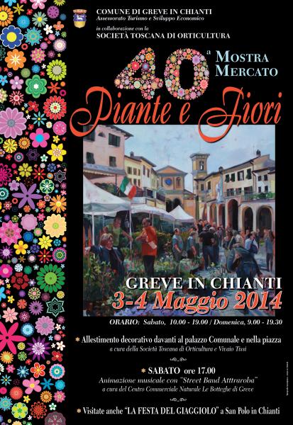 Dalle 10 alle 19 di sabato 3 maggio e dalle 9 alle 19.30 di domenica 4 maggio, la bella piazza di Greve in Chianti offrirà un connubio di colori e profumi: saranno esposte tantissime varietà di piante, tra cui rose, azalee, ortensie, begonie, gerani, e poi agrumi, limoni, piante da appartamento, piante grasse ed erbe aromatiche.