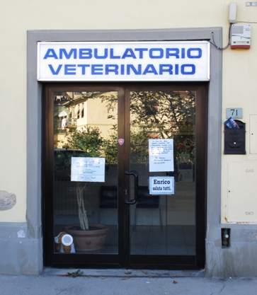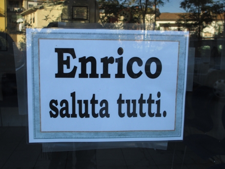 Sulla cassa un mazzo di rose rosse e una scritta “Enrico saluta tutti”, comparsa anche sul vetro della clinica veterinaria.