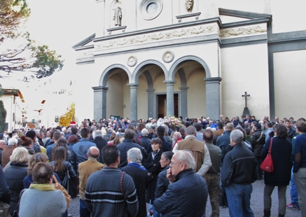 Dopo la benedizione, il figlio Federico un ragazzo forte che durante la funzione ha più volte abbracciato la madre, ha letto una lettera dedicata al padre Enrico, detto “Roccia”: "Caro babbo, hai sempre voluto bene a noi e a tutti quelli che ti stavano attorno, non hai mai fatto mancare niente a nessuno. Hai dato speranze e gioie con il tuo lavoro anche se a volte ti faceva stressare e arrabbiare, ma lo amavi tanto. Hai tenuto nascosto o ti scocciava a volte dire che andavi a caccia, ma da dopo che hai avuto l’infarto, ti sei fregato dei pregiudizi della gente, e hai incominciato veramente a divertirti. Hai creato tanto a cominciare da una squadra di amici che sempre hai sognato, hai creato un gruppo di lavoro tenendoli insieme come se tutti fossero tuoi fratelli. Hai creato una manifestazione quando tutti credevano che a Greve fosse impossibile. Sì babbo, ne facevi tante e soprattutto hai incominciato a farle da quando io ho cominciato a crescere e condividere ogni tua singola passione: ecco io ero il tuo stimolo più grande e tu lo eri e lo sarai per me. Ti ho promesso delle cose prima che ti addormentassero per non soffrire. Sappi che io le manterrò, mi hai istruito bene, mi hai preparato, ora sta a me dimostrare quello che mi hai insegnato. Comunque babbo sappi che non sono solo, la mamma mi è sempre vicino come lo era con te, anche Marco e tutti gli amici che ci siamo fatti durante le nostre avventure sono pronti a darmi una mano. E tutto questo lo devo a te. Grazie babbo".