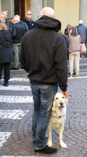 Non tutti sono riusciti a entrare all'interno della chiesa di Santa Croce, alcuni sono dovuti rimanere fuori, altri lo hanno fatto volutamente in quanto assieme a loro, arrivati a dare l’ultimo saluto, c’erano anche i loro cani.