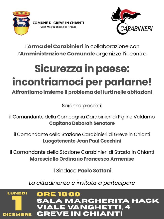 GREVE IN CHIANTI – “Sicurezza in paese: incontriamoci per parlarne!”.
