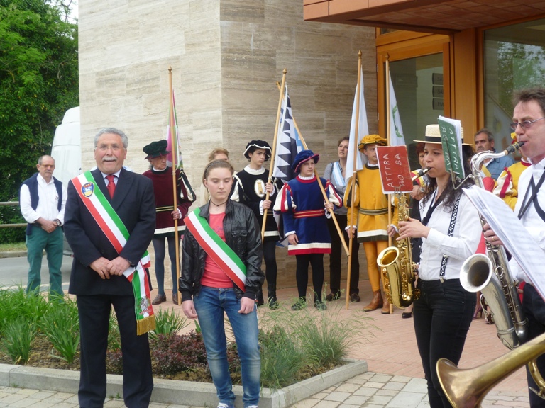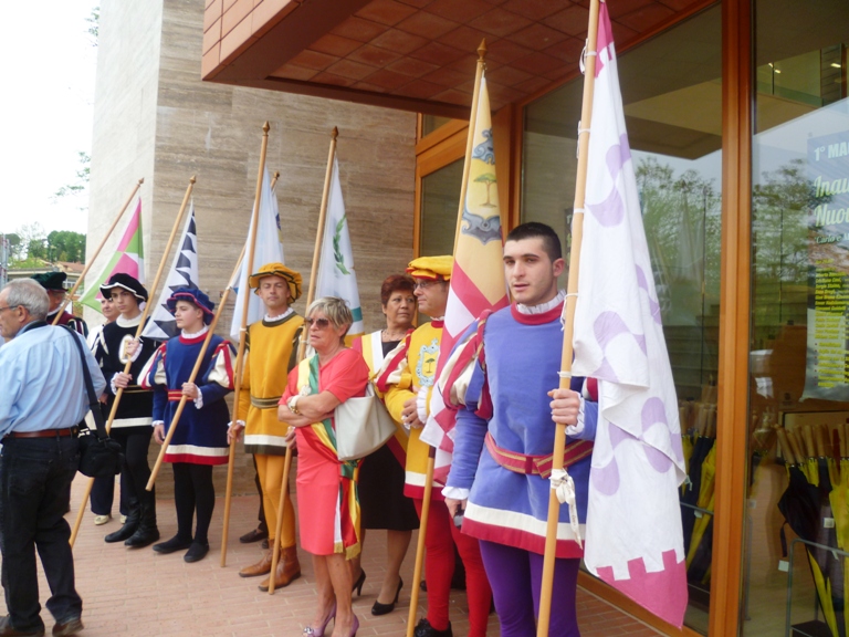 A tagliare il nastro, mercoledì 1 maggio, il sindaco di Greve in Chianti Alberto Bencistà accompagnato dalla "sindachessa" del consiglio dei giovani. Poi tutti i rappresentanti dei rioni grevigiani con i gonfaloni, la giunta comunale al completo, don Luca Albizzi che ha provveduto alla benedizione.