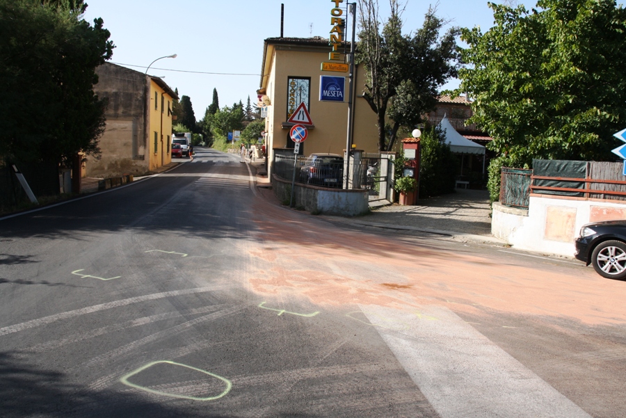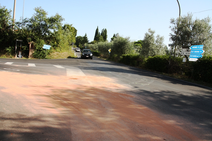 LA MARTELLINA (STRADA IN CHIANTI) – Grave incidente nella tarda serata di lunedì 5 agosto in località La Martellina, a pochi chilometri da Strada in Chianti (nelle foto il luogo dell'impatto).