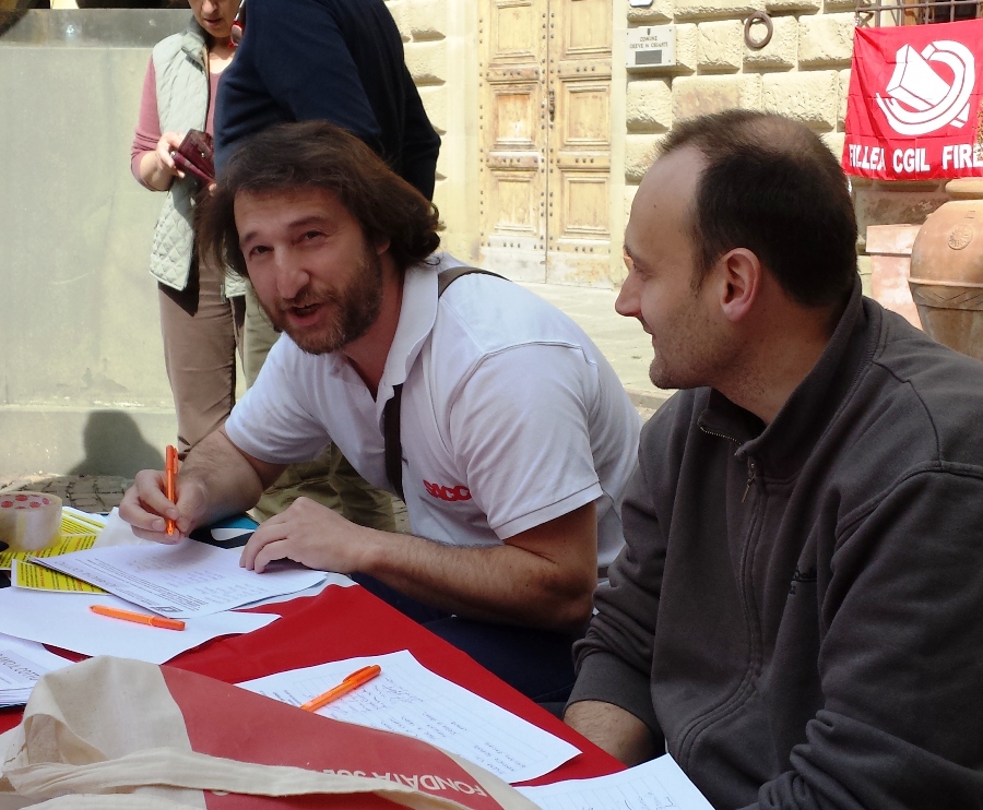 IMPRUNETA-GREVE IN CHIANTI – Quasi 600 le firme raccolte dai delegati Rsu Fillea Cgil e dai sindacalisti della stessa Fillea Cgil sabato 17 maggio, nei due banchi allestiti nelle piazze di Greve in Chianti e Impruneta.