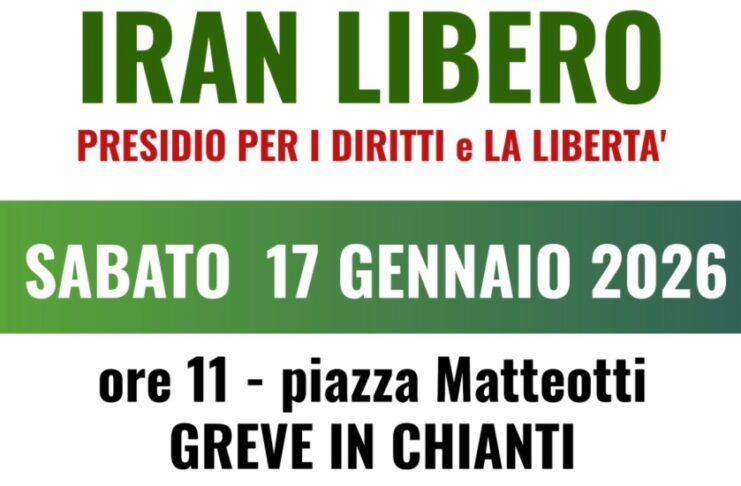 GREVE IN CHIANTI – Immagina Greve, Partito Socialista Italiano, Partito Radicale e +Europa Firenze, promuovono e invitano la cittadinanza a partecipare al presidio “Iran Libero – Presidio per i diritti e la libertà”, che si terrà sabato 17 gennaio 2026 alle ore 11 in piazza Matteotti a Greve in Chianti.