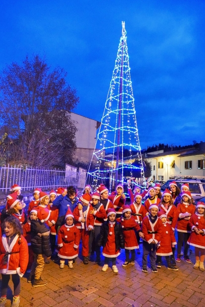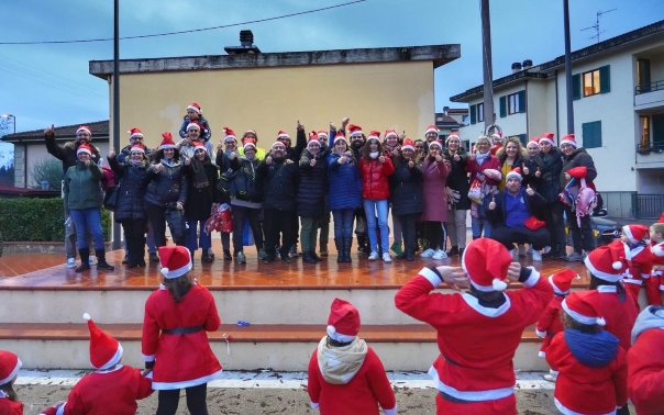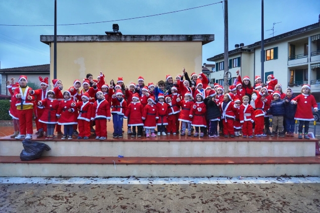 “Una vera e propria… invasione di Babbi Natale – aggiungono – per le vie del paese: più di 80 bambini che, all’uscita di scuola, vestiti con il classico abito rosso e bianco, hanno invaso la frazione”.