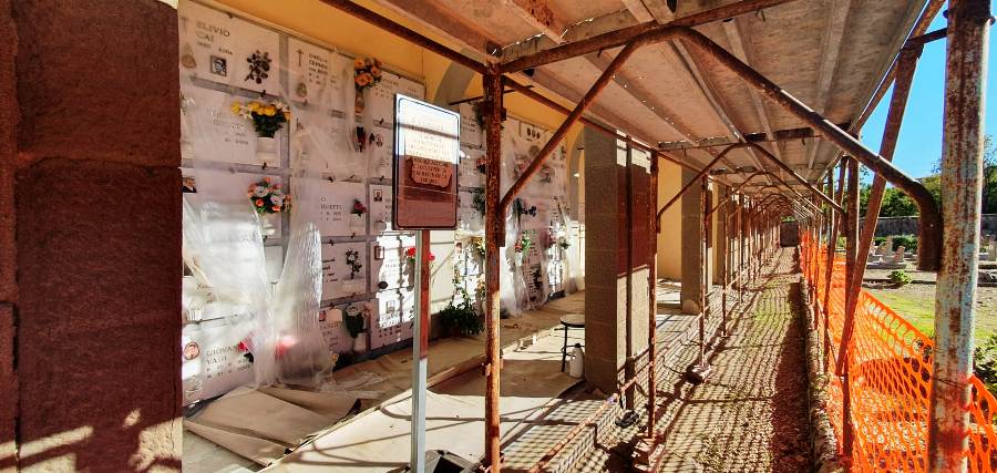 Lorenzo è, insieme ad altri, nella zona del cimitero che da giugno scorso è oggetto di lavori, per la manutenzione straordinarie delle coperture delle cappelle.