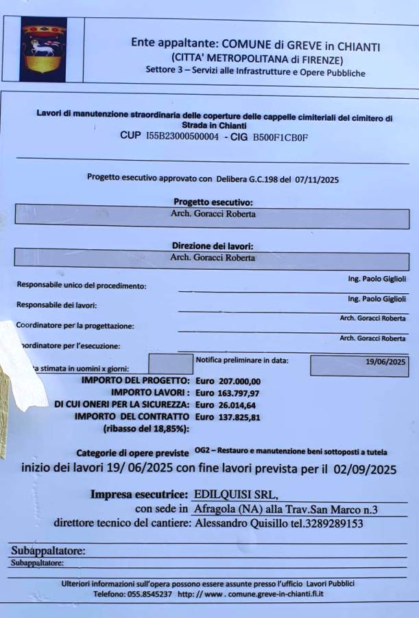 “Chiediamo al Comune di Greve in Chianti – conclude Sara – di terminare questi lavori, e di restituirci l’accesso ai luoghi in cui riposano i nostri defunti. E’ una necessitĂ , oltre che un nostro diritto”.
