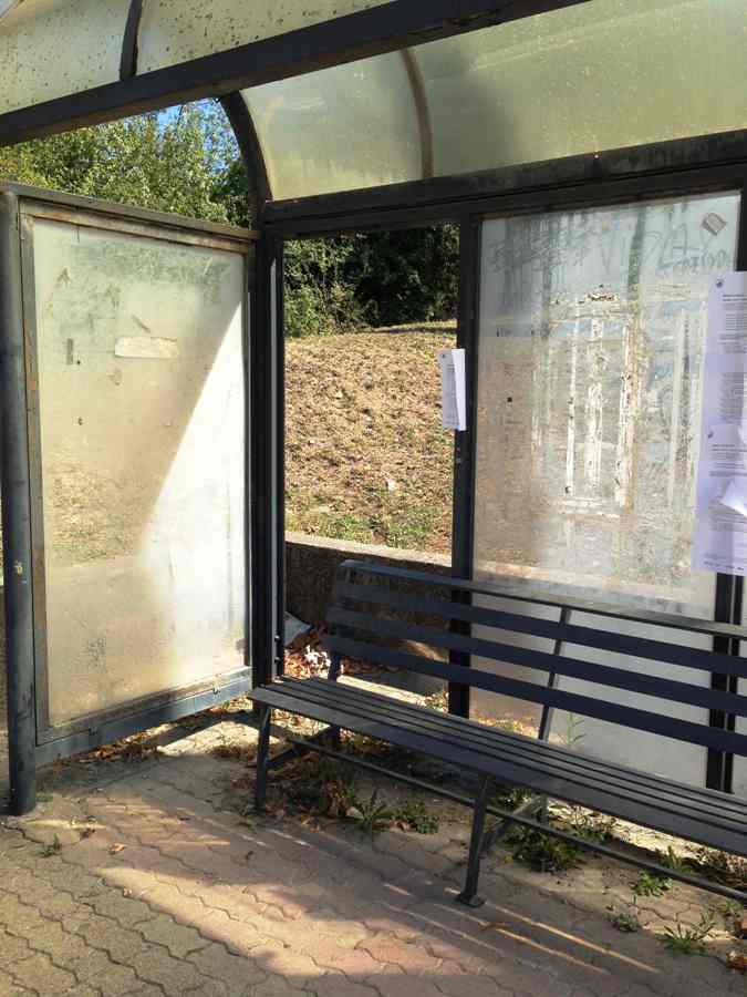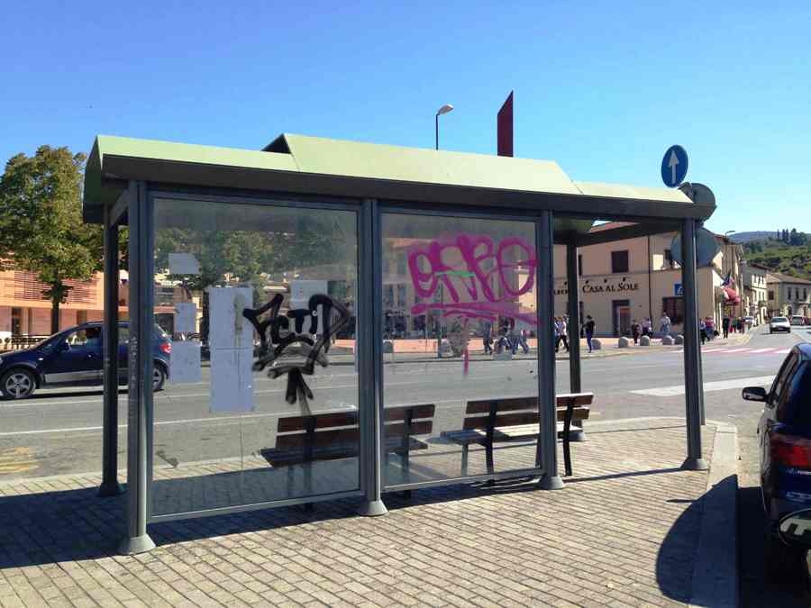 Dalle foto si evidenzia che alcune pensiline, come quelle vicine alla nuova biblioteca di Greve in Chianti, oltre alla pulizia per ritornare come nuove necessitano del ripristino delle fiancate in plexiglas mentre in alcuni casi si richiede anche il rispristino delle panchine.