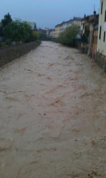 GREVE IN CHIANTI – Con le fortissime piogge di questa mattina la Greve è tornata subito a far paura (in foto il fiume nel cuore di Greve in Chianti).