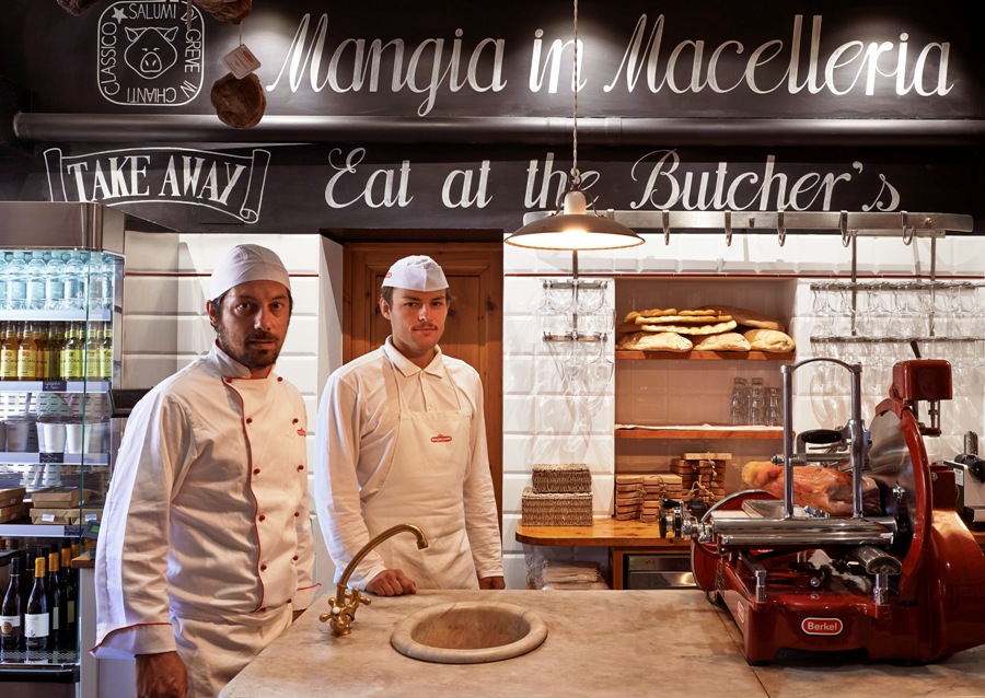 L’approccio è smart come quello dei fast food, ma la filosofia è di nicchia, improntata sull’alta qualità del prodotto. Ci si serve da soli (nei frigoriferi sono pronti da gustare secondi di carne come la tartare tagliata al coltello, il carpaccio di vitellone e la soprassata di maiale, ma anche alternative vegetariane come la pappa al pomodoro) oppure si ordina un panino o un tagliere al banco, per poi andarsi a sedere nel giardinetto che si affaccia sulla storica piazza Matteotti o nella rinnovata grotta del ‘400 all’interno della macelleria o portare le proprie scelte a casa come take away.