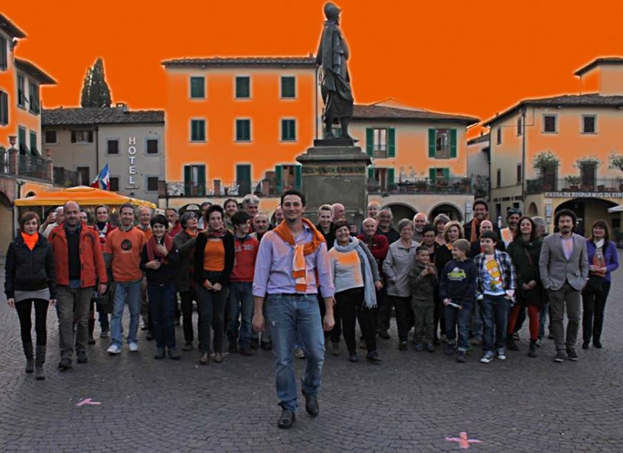 Le prime mosse, compresa la foto che vedete sopra con la piazza di Greve tinta di arancione e tante facce giovani alle sue spalle, in una sorta di "Quarto Stato" rivisitato, va in questa direzione.