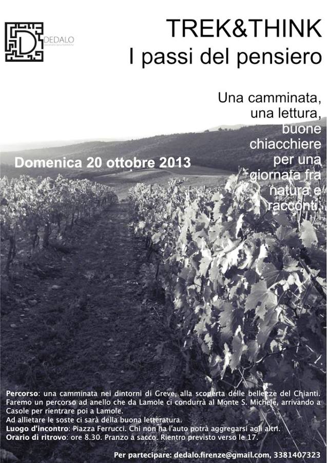 GREVE IN CHIANTI – "Trek &Think": ovvero passi del pensiero nel Chianti. La terza edizione di T&T si svolge attraverso le bellezze del Chianti grevigiano, partendo dal paese di Lamole, arrivando a Monte San Michele, passando per Casole e tornando infine a Lamole.