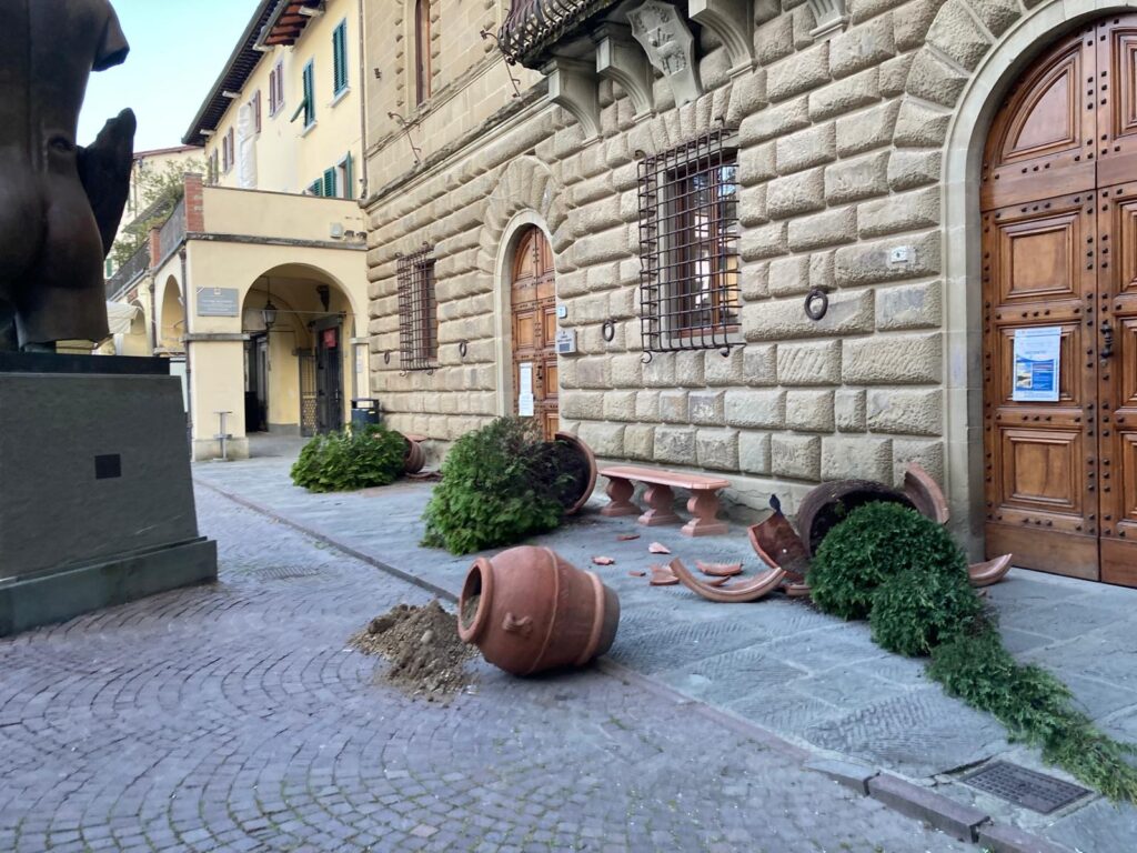 Stamani infatti chi si è svegliato ha trovato la scena che vedete nelle foto: fioriere ribaltate e distrutte.