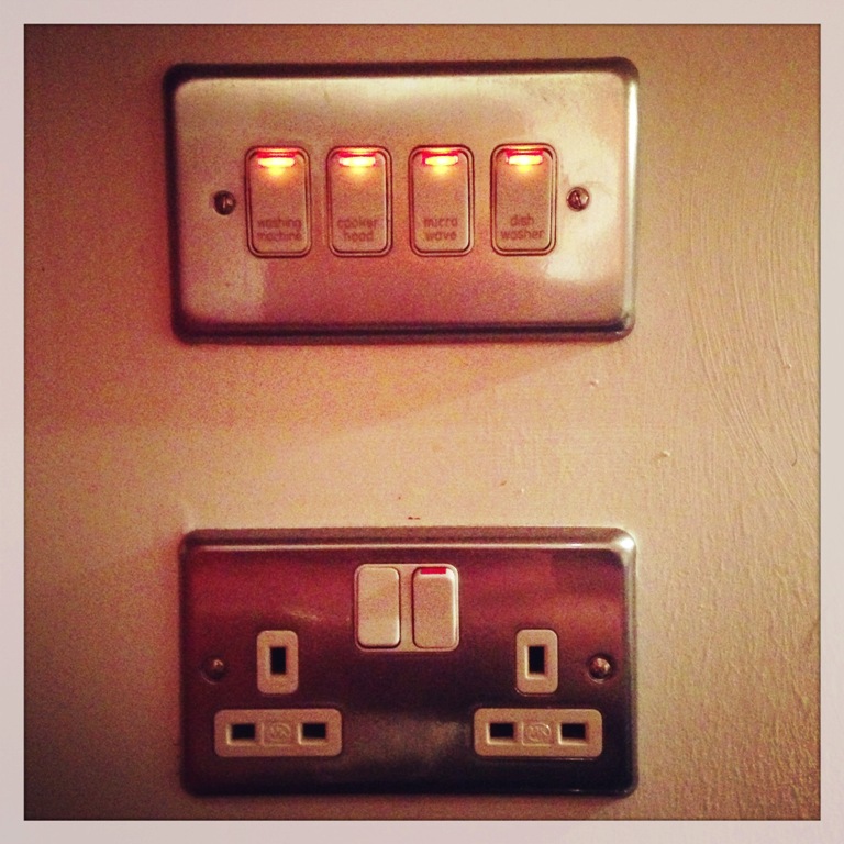 Nel cucinotto è un tripudio di apparecchi elettrici, chi più ne ha più ne metta! A parte le canoniche 8 prese per eventuali tostapane, bollitore, frullatore, mixer, centrifuga, ogni elettrodomestico ha un pulsante privato col nome sopra, mentre il piano cottura ha il suo interruttore lontano da tutti gli altri, più grande e anonimo. Quando la mattina ti sei orientato in questo labirinto sei già stanco ed è facile che rinunci alla colazione.