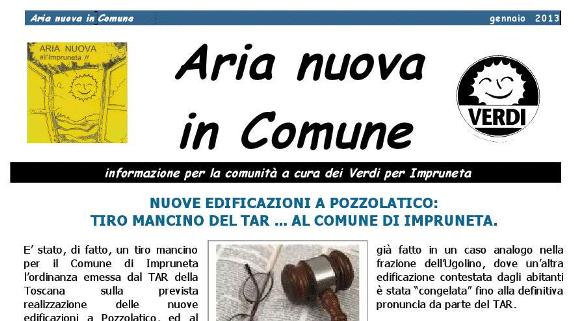 E' on line "Aria nuova in Comune", notizie per la comunità a cura dei Verdi per Impruneta. Il gruppo ambientalista torna a farsi notare per l'ennesima iniziativa che ne testimonia la vivacità.