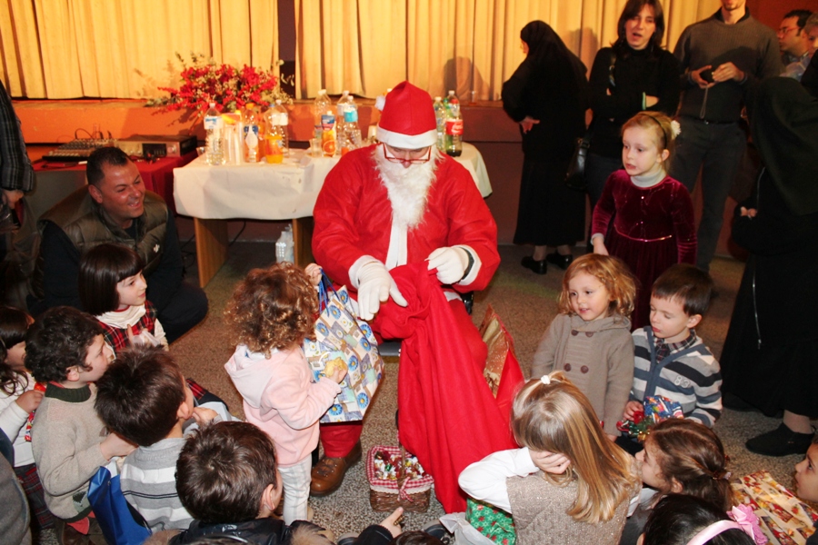 Sono proprio i genitori a raccontarcela: "Grazie allo spirito che vive tangibile nelle religiose dell'asilo, e grazie al loro prodigarsi per fare dei nostri piccoli delle persone più attente e sensibili ai problemi altrui, da tre anni, durante la festa che facciamo per gli auguri natalizi, arriva come da molte parti un bellissimo Babbo Natale (vedi foto in alto)".