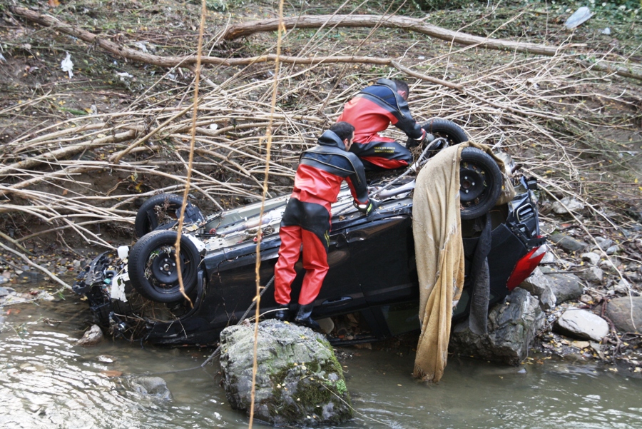 L’auto è riemersa dopo che le acque si sono ritirate, in via Cassia di fronte alla casa di cura Villa Le Terme: era rovesciata sulla sponda del fiume sul confine che delimita i comuni di San Casciano e Impruneta.