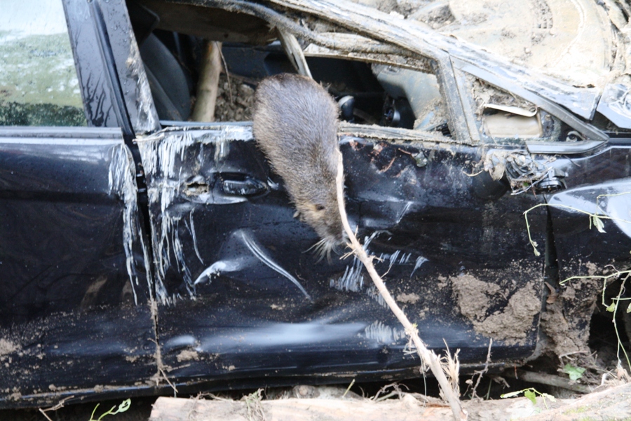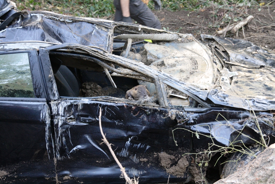 La sorpresa è arrivata a fine operazione, quando da quello che era rimasto dell’ abitacolo, si è affacciata una grossa nutria, lasciando sbigottiti i presenti. Questa non sembrava particolarmente contenta di lasciare la sua nuova “dimora”, che poi però ha abbandonato ritornando nella Greve.