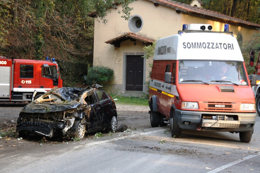 All’operazione di recupero, per regolare la viabilità, è intervenuta anche una pattuglia della polizia municipale di Impruneta, oltre al proprietario della vettura che ha dovuto fare intervenire il carro attrezzi per riportare a casa quello che rimaneva. Un ammasso di lamiere da rottamare.