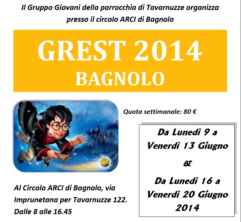 TAVARNUZZE (IMPRUNETA) – Il Gruppo Giovani della parrocchia di Tavarnuzze organizza presso il circolo Arci di Bagnolo il "Grest 2014".