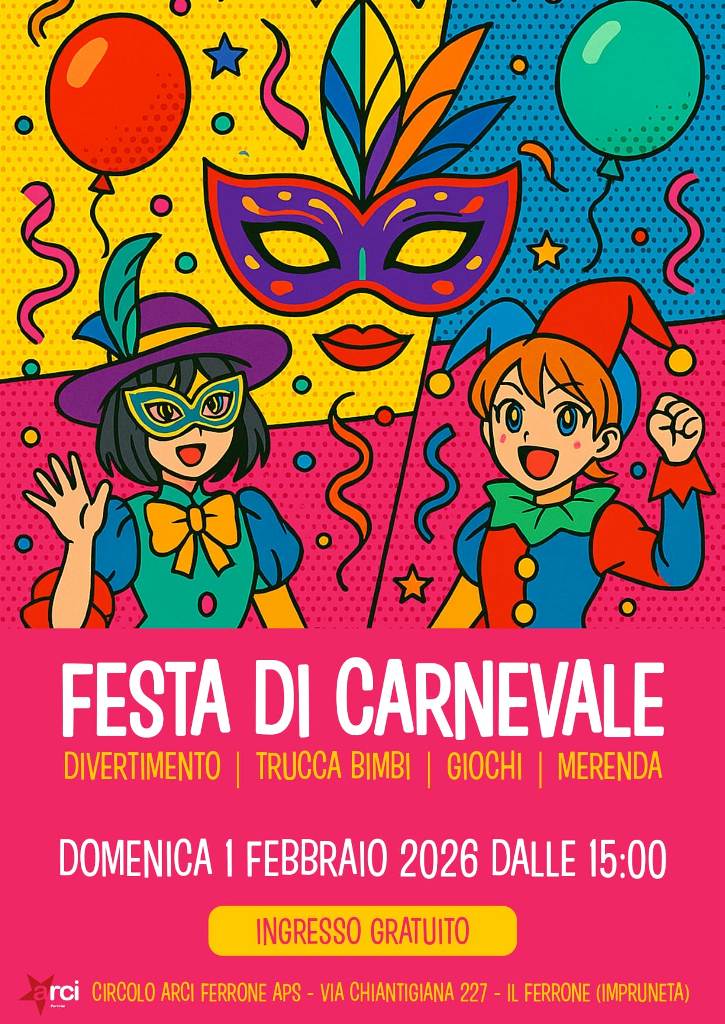 Si parte domenica 1 febbraio al circolo Arci del Ferrone, dove dalle 15 ci saranno trucca bimbi, giochi, merenda.
