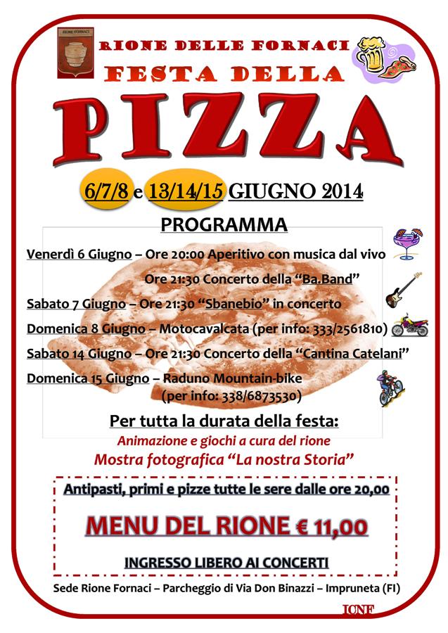 IMPRUNETA – Tutto pronto per la "Festa della Pizza" organizzata dal rione delle Fornaci, presso la sede rionale nel parcheggio di piazza don Binazzi.