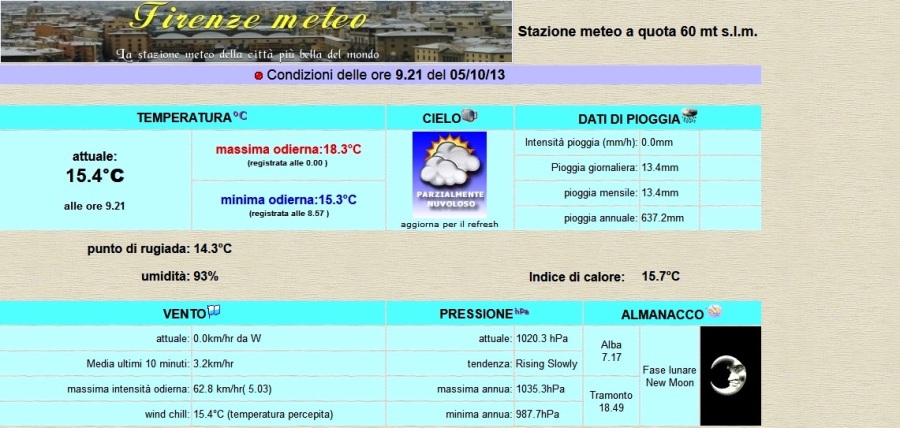 Il sito, amatoriale (è stato realizzato da un appassionato imprunetino, Luca Baroncini) e a consultazione totalmente gratuita, da 9 anni riporta in tempo reale le temperature, le piogge, gli altri dati meteorologici e le webcam della città di Firenze.
