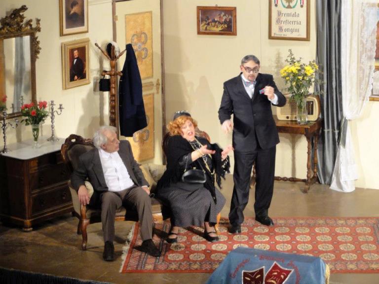 Stiamo parlando della Compagnia Filodrammatica Spettacolo Imprunetino, che nei giorni scorsi ha portato sul palcoscenico del Circolo Cattolico "La Panacea di tutti i mali", tre brillantissimi atti firmati da Antonella Zucchini. Con la regia di Andrea Balatri sono andati in scena Giovanni Burgassi (nel ruolo di Clemente Bongini, orefice); Francesco Nidiaci (Guerrino, suo fratello); Francesca Gabriele (Fedora, sua moglie); Viola Bruni (Gioconda, la loro figlia); Desi Fantoni (Primetta, la serva di casa); Gregorio Parrini (Ruggero, innamorato di Gioconda); Leonardo Cerrini (Vittore, amico di Ruggero); Sabina Tofanari (Amrbosia, sorelle degli orefici); Simone Nardini (Pio, pretendente di Gioconda); Carla Pieraccini (Brigida, sua madre). Suggeritore Alessandro Polignano; musica, scene, costumi a cura dello staff.
