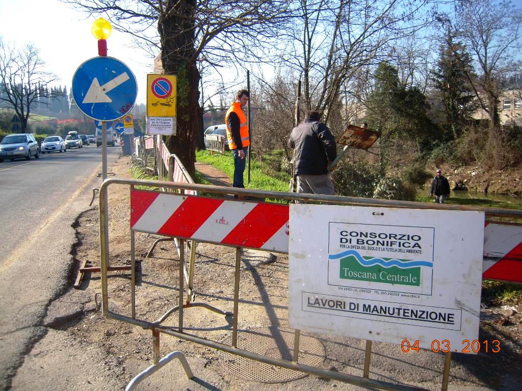 Dapprima è stata eliminata la casetta di deposito Anas ormai crollata, poi sono stati tagliati gli alberi lungo strada ed è stata posizionata la barriera new jersey per la sicurezza del tratto stradale in cui la sponda è più stretta e adesso, spostati per il momento di qualche metro i cassonetti, il Consorzio ha avviato i propri lavori di manutenzione per la sicurezza idraulica.