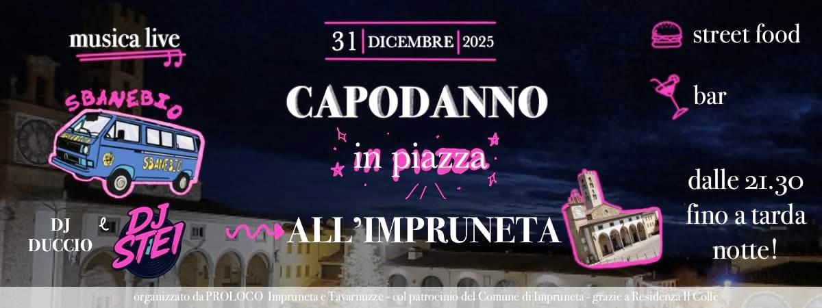 IMPRUNETA – Per la prima volta sul territorio, il Comune di Impruneta propone un evento di Capodanno interamente pubblico in piazza Buondelmonti, con un programma pensato per offrire alla comunità un’occasione condivisa di festa e partecipazione.