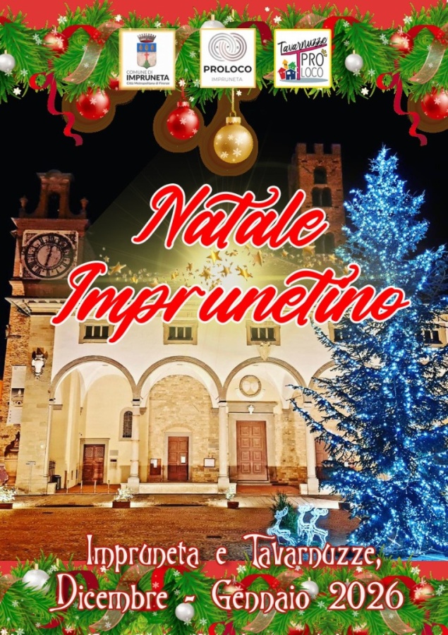 Il programma delle festività natalizie 2025 è a cura della Pro Loco di Impruneta e della Pro Loco di Tavarnuzze, con il patrocinio del Comune di Impruneta.