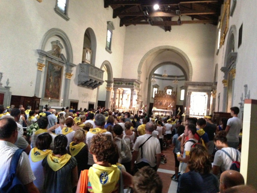 In una chiesa stracolma di fedeli, presente anche il sindaco di Impruneta Alessio Calamandrei. E' stato il viceparroco del proposto don Luigi Oropallo, don Stefano Naldoni, a raccontarci l'emozione di quella chiesa strapiena e della partenza verso la città.