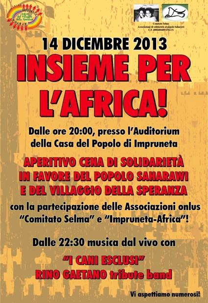 IMPRUNETA – Un aperitivo-cena in soliderietà al Villaggio della Speranza e del popolo Saharawi, organizzato dalle associazioni onlus Comitato Selma e Associazione Impruneta-Africa.